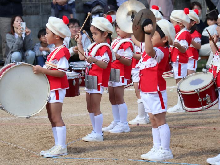 小太鼓や大太鼓をもって