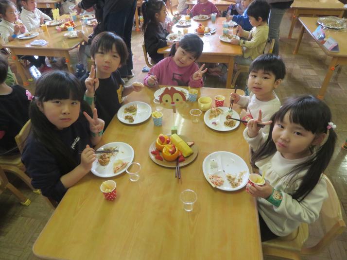お友だちと給食を食べたよ!